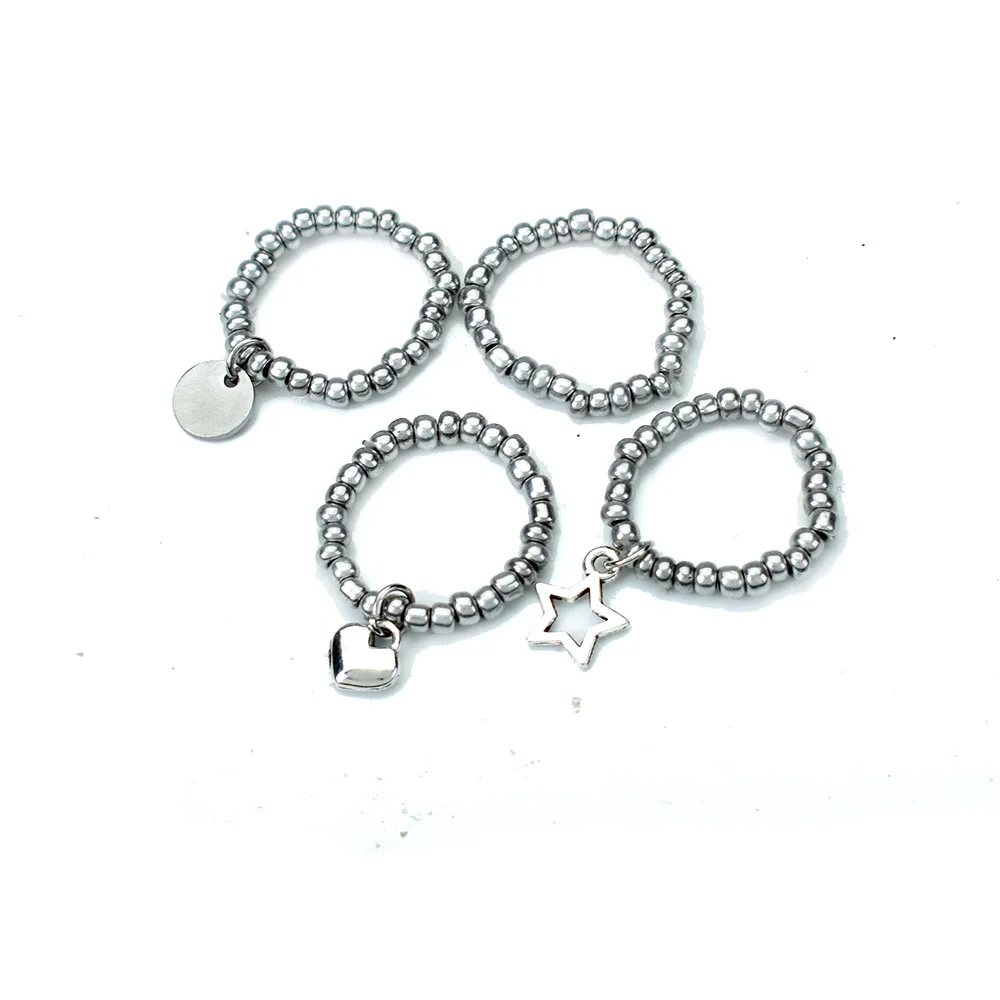 Name: Anillo elástico con colgante redondo de corazón de Metal para mujer y niña, anillos de plata de Color de cuenta, joyería sencilla para dedos