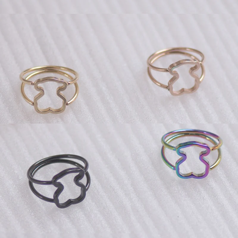 Name: Anillo de metal con diseño de oso, joyería para la mano en ácero inoxidable, enchapado en oro y plata en tallas 6-8, 1 unidad
